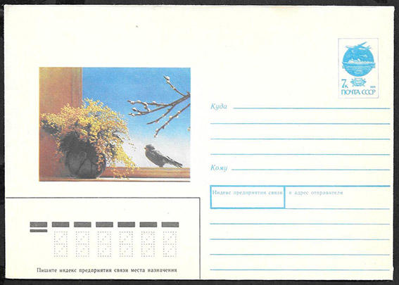 ХМК 91-272. Мимоза в вазе и птичка. 1991 год