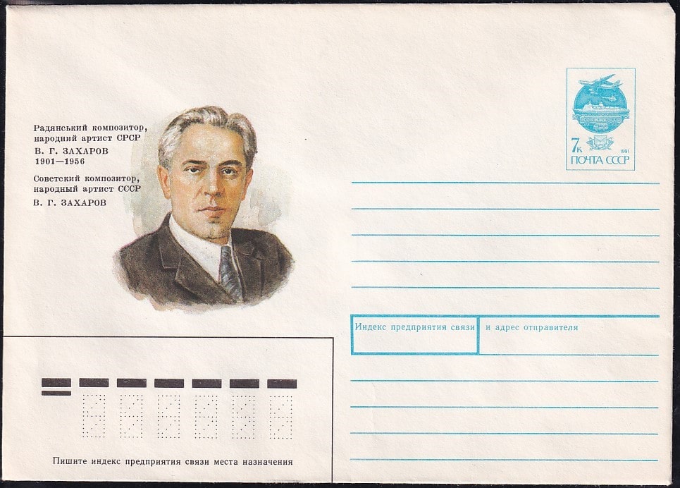 ХМК 91-52 Советский композитор В. Г. Захаров. Выпуск 24.01.1991 год