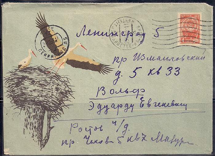 ХМК. Аисты (худ. Алексеев), 03.09.1963 год, № 63 - 410, прошел почту