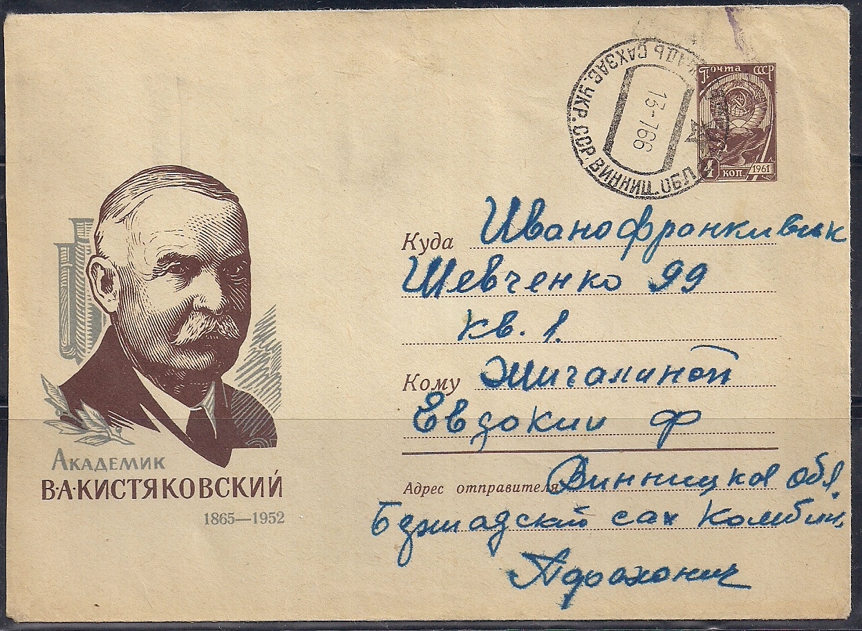 ХМК. Академик В.А. Кистяковский, 22.08.1965 год, № 65-365, прошел почту