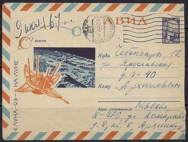 ХМК. АВИА. "Луна-9" на Луне, № 66-148, 26.04.1966 год, прошёл почту