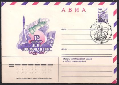 ХМК АВИА со спецгашением. 12 апреля - день космонавтики, 12.04.1982 год, Москва почтамт