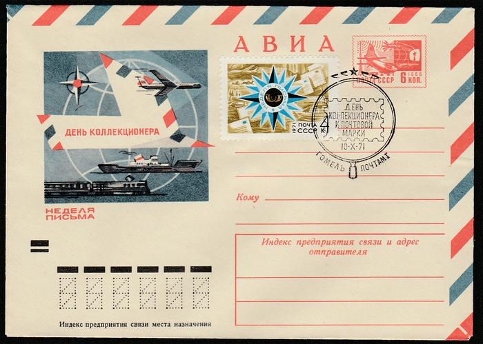 ХМК АВИА со СГ. и маркой. День коллекционера. 10.10.1971 г. Гомель.