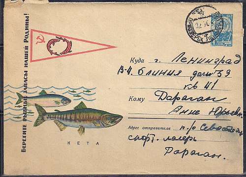 ХМК. Берегите рыбные запасы нашей Родины! Кета, 03.03.1965 год, № 65-99, прошел почту Состояние смотреть на фото