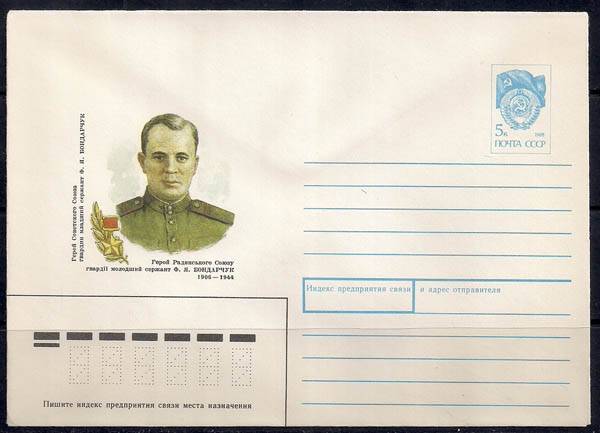 ХМК. Герой СССР гвардии младший сержант Ф.Я. Бондарчук, 29.10.1990.год, № 90-444