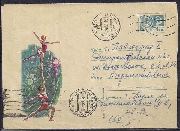 ХМК. Гимнасты. № 69-109, 11.02.1969 год, прошёл почту