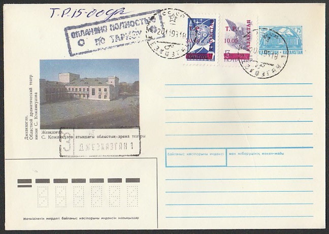 ХМК Казахстана. Джезказган. Областной театр. Провизории. Гашение: Джезказган-1, 1993 год (IV)