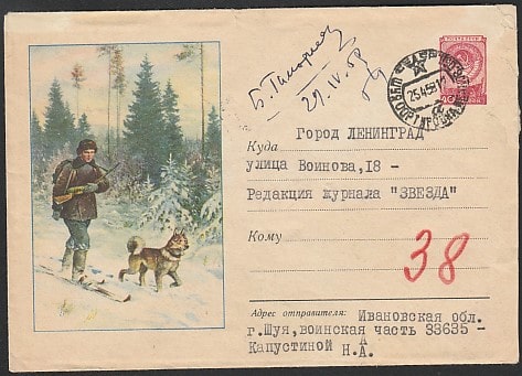 ХМК. Охотник с собакой, 15.01.1958 год, прошёл почту