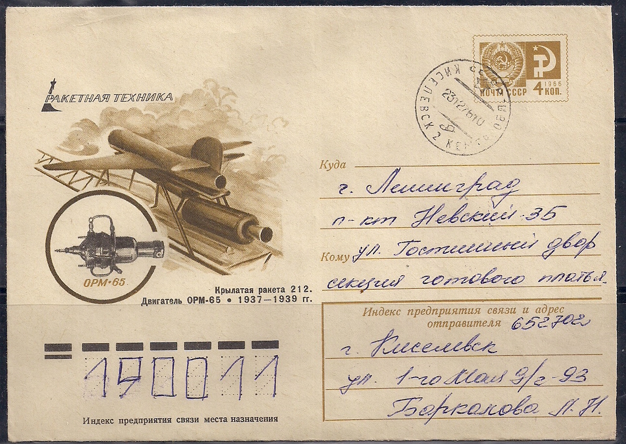 ХМК. Ракетная техника. Крылатая ракета 212. Двигатель ОРМ-65, 30.08.1976 год, № 76-519, прошел почту
