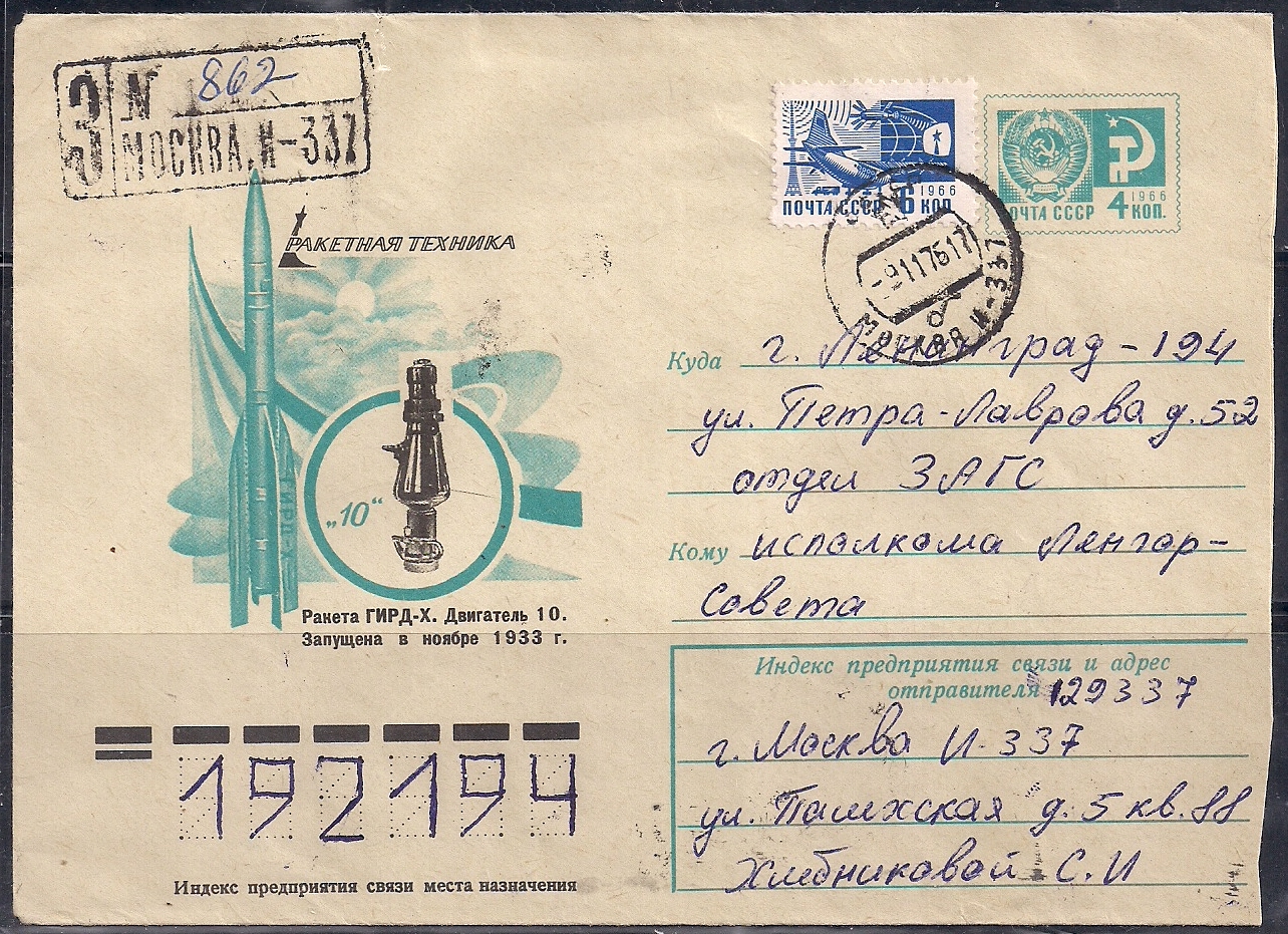 ХМК. Ракетная техника. Ракета ГИРД-Х. Двигатель 10, 30.08.1976 год, № 76-520, заказное, прошел почту