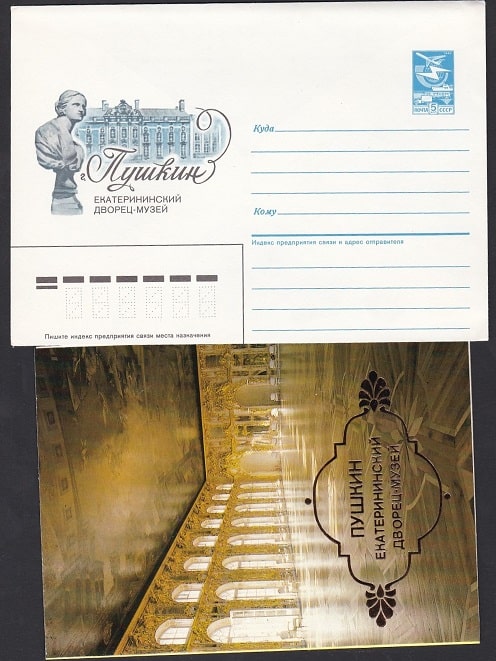 ХМК с карточкой. 1335 Сувенирный комплект. Пушкин Екатерининский дворец Ленинград. 1987 год