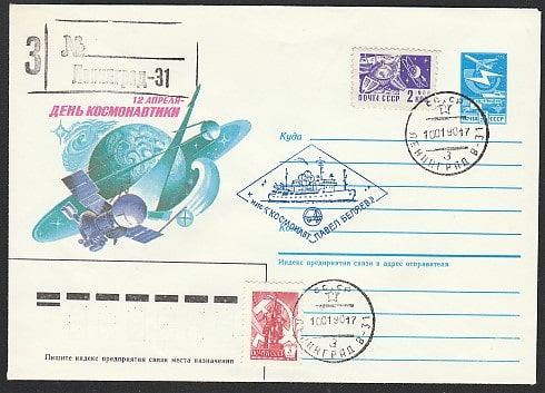 ХМК с КШ. НИС "Космонавт Павел Беляев", гашение 10.01.1990 год, Ленинград-31 (+1Ю)
