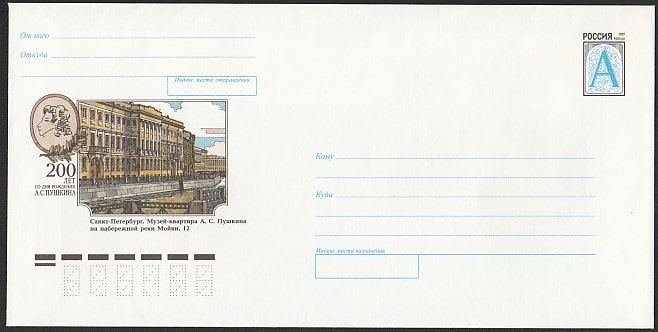 ХМК с литерой "А". Санкт-Петербург. Музей - квартира А.С. Пушкина, 1999 год
