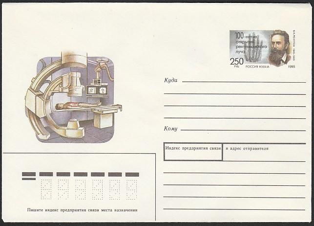 Конверт с ОМ. 100 лет открытия рентгеновского излучения. Портрет В.К. Рентгена, 1995 год, № 28