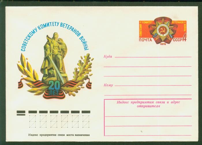 Конверт с ОМ. 20 лет советскому комитету ветеранов войны. Выпуск 02.08.1976 год.