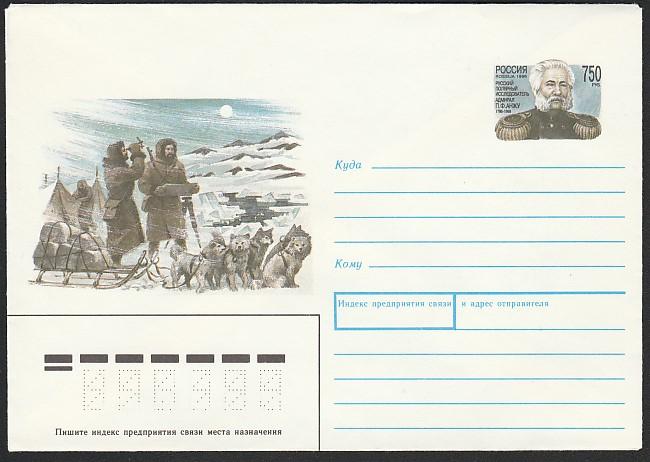 Конверт с ОМ. 200 лет со дня рождения полярного исследователя П.Ф. Анжу, 1996 год, № 39