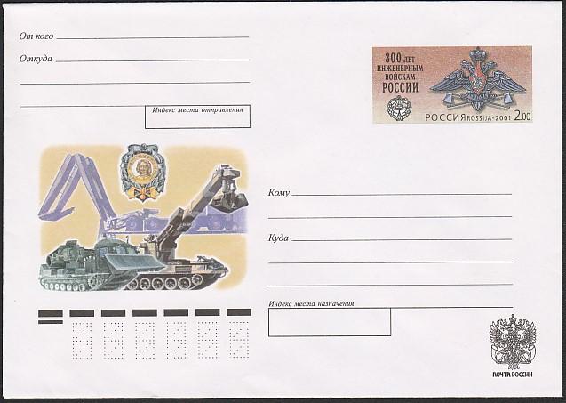 Конверт с ОМ (2 р). 300 лет инженерным войскам России, 2001 год, № 97