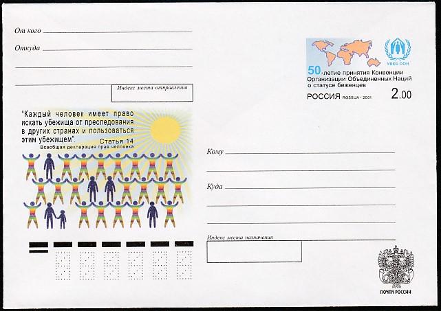 Конверт с ОМ. 50 лет принятия Конвенции о статусе беженцев, 2001 год, № 101