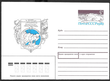 Конверт с ОМ. К 250-летию Великой Северной экспедиции 1733-1743 гг. Д.Я. Лаптев. Выпуск 6.04.1989 г.