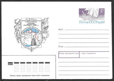 Конверт с ОМ. К 250-летию Великой Северной экспедиции 1733-1743 гг. Х.П. Лаптев. Выпуск 30.06.1988 г.