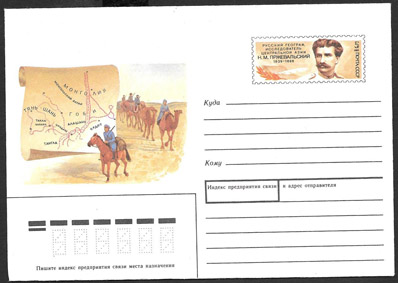 Конверт с ОМ. Н.М. Пржевальский. Выпуск 15.12.1988 г.