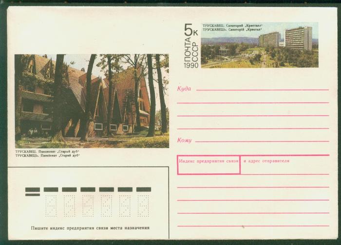 Конверт с ОМ., Трускавец. Пансионат "Старый дуб". Выпуск 26.12.1989 год. № 89-434