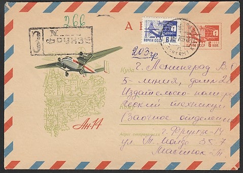ХМК. Самолёт АН-14, 05.02.1969 год, заказное, прошёл почту
