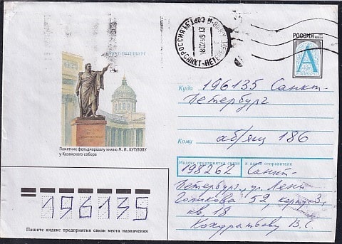 ХМК Санкт-Петербург. Памятник М. И. Кутузову у Казанского собора, 6.06.1997 год, прошел почту