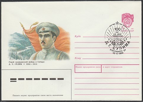 ХМК со СГ. 100 лет со дня рождения героя гражданской войны в Сибири Д.Г. Сулима, 06.11.1990 год, Новосибирск-99