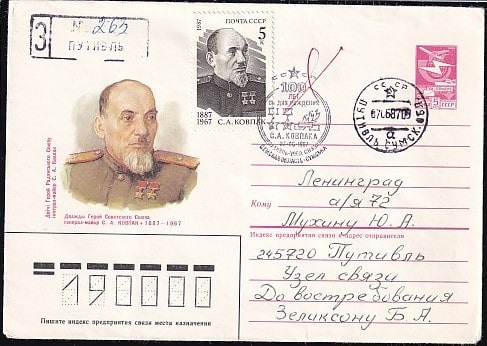 ХМК со СГ "100 лет со дня рождения С. А. Ковпака", 7.06.1987 год, Путивль, прошел почту