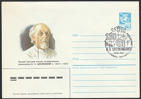 ХМК со СГ. 130 лет со дня рождения К.Э. Циолковского, 17.09.1987 год, Рязань, почтамт.