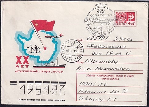 ХМК со СГ "200 лет со дня рождения Ф. Ф. Беллинсгаузена", 20.09.1978 год, Ленинград, прошел почту (ВВ)