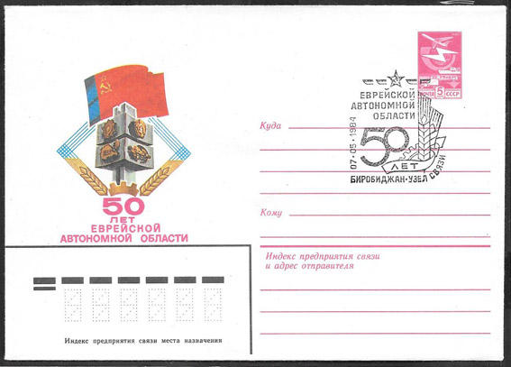 ХМК со спецгашением - 50 лет Еврейской автономной области, 1984 год