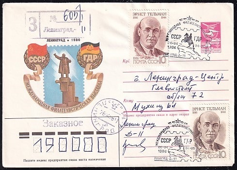 ХМК со СГ "Международная фил. выставка СССР-ГДР", 1986 год, прошел почту