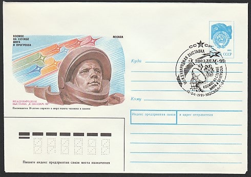 ХМК со СГ. Международная филвыставка "К звёздам-91". Космос на службе мира и прогресса, 13.04.1991 год, Москва, Г-34 ( 2Ю)