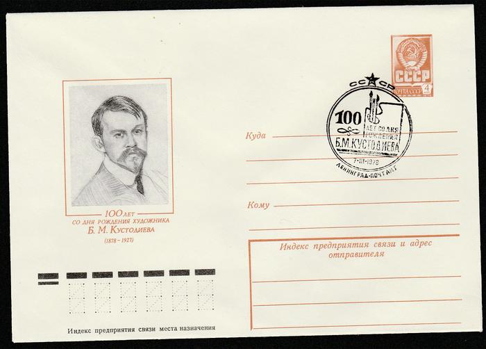 ХМК со спецгашением. 100 лет со дня рождения художника Б.М. Кустодиева. 07.03.1978 г. Ленинград.