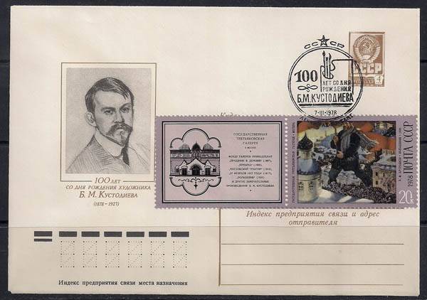 ХМК со спецгашением. 100 лет со дня рождения художника Б.М. Кустодиева, марка (ном 20), 07.13.1978 год, Ленинград почтамт