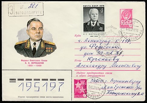 ХМК со спецгашением. 100 лет со дня рождения маршала СССР К.Е. Ворошилова, 04.02.1981 год, Ворошиловград, прошёл почту