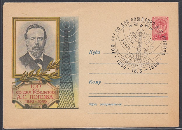 ХМК со СГ - 100 лет со дня рождения А.С. Попова, Ленинград, 16.03.1959 год