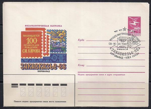 ХМК со спецгашением. 100 лет со дня рождения С.М. Кирова. Филвыставка "Закавказье-86", 09.-16.04.1986 год, узел связи Кировабад