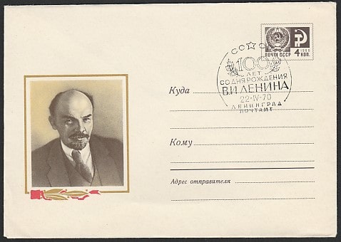 ХМК со спецгашением. 100 лет со дня рождения В.И. Ленина, 22.04.1970 год, Ленинград, почтамт