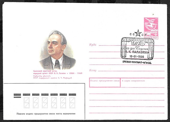 ХМК со спецгашением - 100 лет со дня рожедения В.К. Папазяна. Ереван 18.01.1988 год