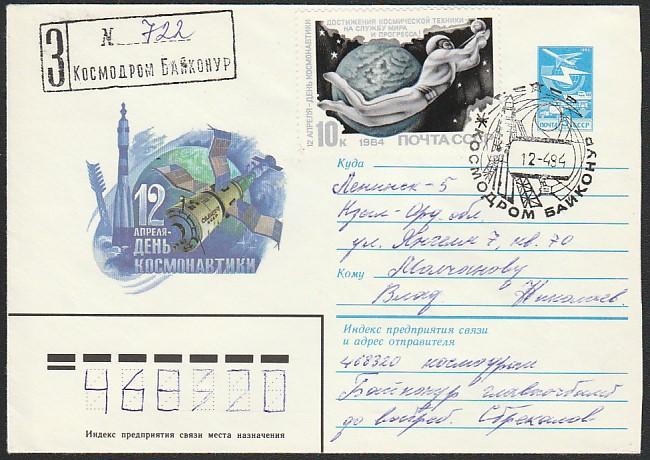 ХМК со спецгашением. 12 апреля - день космонавтики, 12.04.1984 год, космодром Байконур, прошёл почту (Ю)