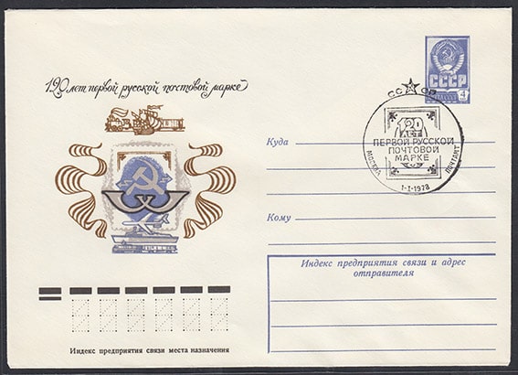 ХМК со спецгашением - 120 лет первой почтовой русской марке, Москва 1.1.1978 год