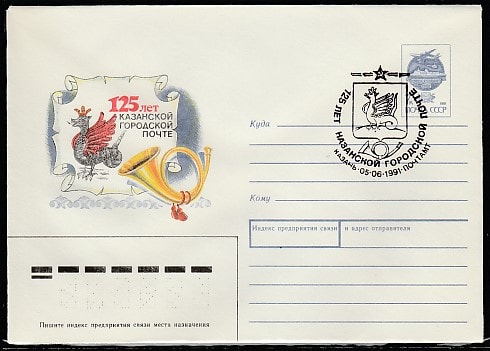 ХМК со спецгашением. 125 лет Казанской городской почте, 05.06.1991 год, Казань, почтамт