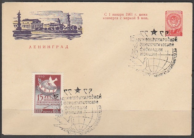 ХМК со спецгашением. 15 лет Международной демократической федерации женщин, 01.12.1960 год, Ленинград, почтамт.