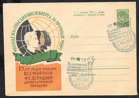 ХМК со спецгашением - 15 лет всемирной федерации демократической молодежи, 1960 год