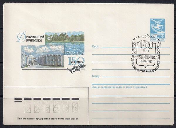 ХМК со спецгашением, 150 лет городу Друскининкай, 31.07.1987 год, узел связи Друскининкай