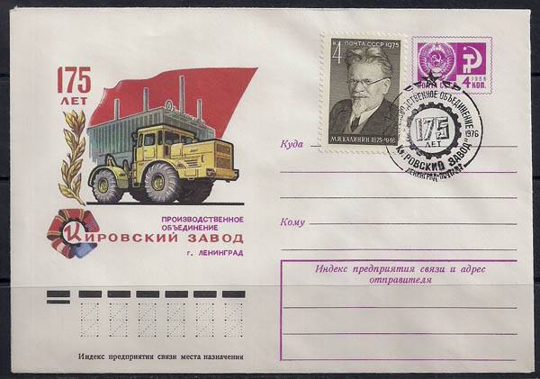 ХМК со спецгашением. 175 лет объединению "Кировский завод" 02.04.1976 год, Ленинград почтамт
