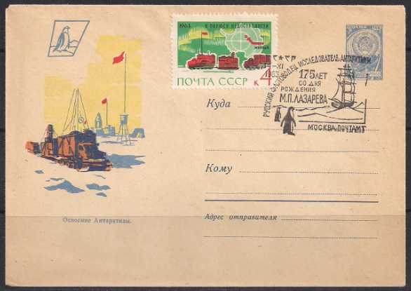 ХМК со спецгашением "175 лет со дня рождения адмирала М.П. Лазарева" , 14.11.1963 год, Москва почтамт